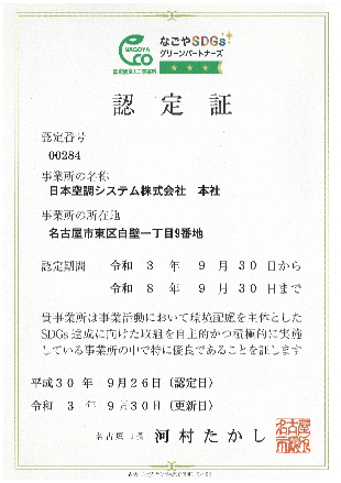 優良エコ事業所に登録