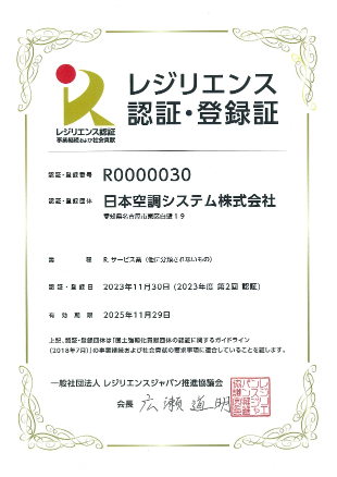 レジリエンス認証を取得